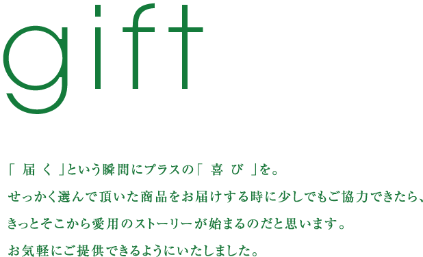それからもう一つ、「人と良い関係を結びたい」そう考えてモノを贈る人のお手伝いをしたいと考えています。「プレゼントに何を贈るか」それはとても大切な主題ですが、「どんな風にラッピングしてあるか」も同じくらい大切です。