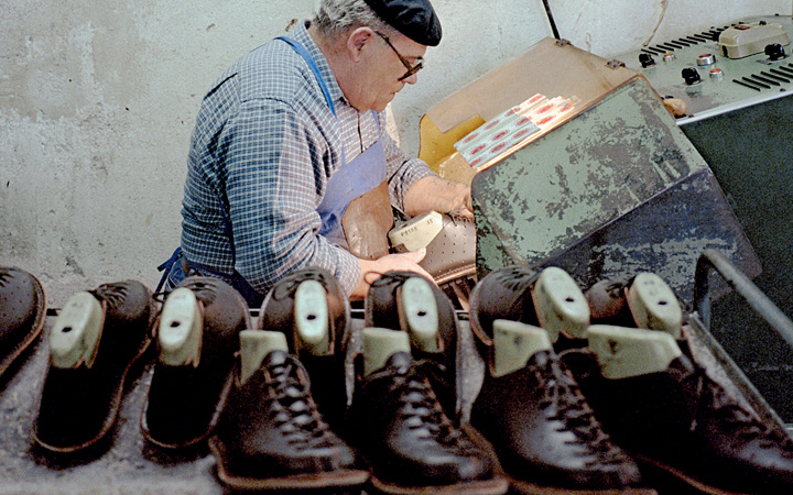 革、染色、縫製といったたくさんの専門技術をもった職人が一足の靴に携わっています。それは安価で大量生産が可能になった現在において採算のとれないやり方かもしれませんが、伝統的な靴作りの知識を持った職人を守り、1992年の創業以来変わらぬ品質を保ち続けているのです。