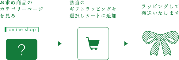 お求めの商品に該当するギフトをカートに追加いただくことでギフトラッピングのご対応をさせていただきます。