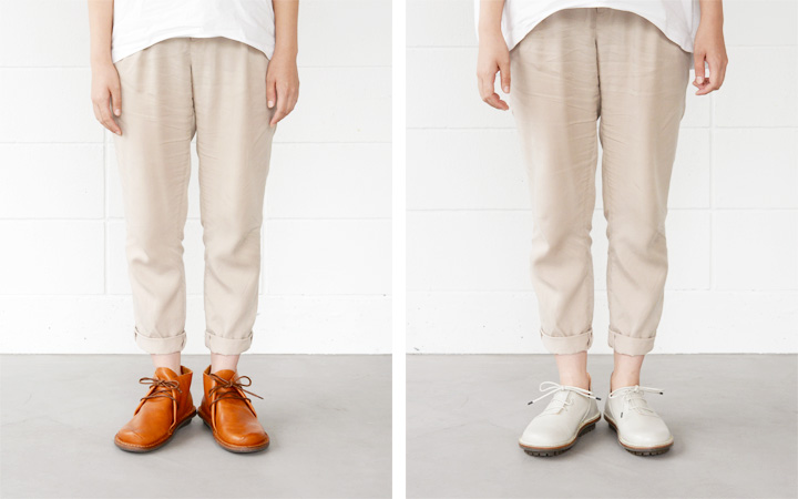 履くほどにインナーソールのコルクが足の形に沈み込み、より使用者の足にフィットしていきます。使用を重ねてシューズにしわが入り少しづつ表情が出てくるようになる頃には、しっかり歩くお出掛けにも長時間の立ち仕事にも手放すことが出来ない足元の大切な道具となっているでしょう。外装の変化とともに、内部も履く方に合わせて変化していくのです。
